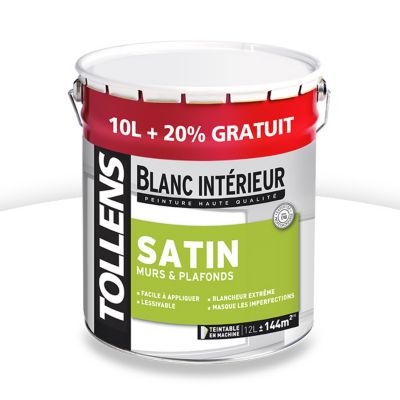 Peinture murs et plafonds TOLLENS blanc satin 10L + 20% | Castorama